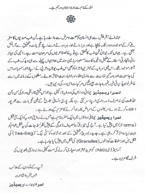 We at Limra, had pioneered and championed the cause in several cases. Since the alkaloidal chemistry is known now. This system embrace within it's fold, medicines of plant, mineral and animal origin. It's popularity is spread to Europe, Africa (Egypt), Asia (Syria, Iraq, Iran). In India Unani system of medicine came into practice around 400 A.D. introduced by Arabs.